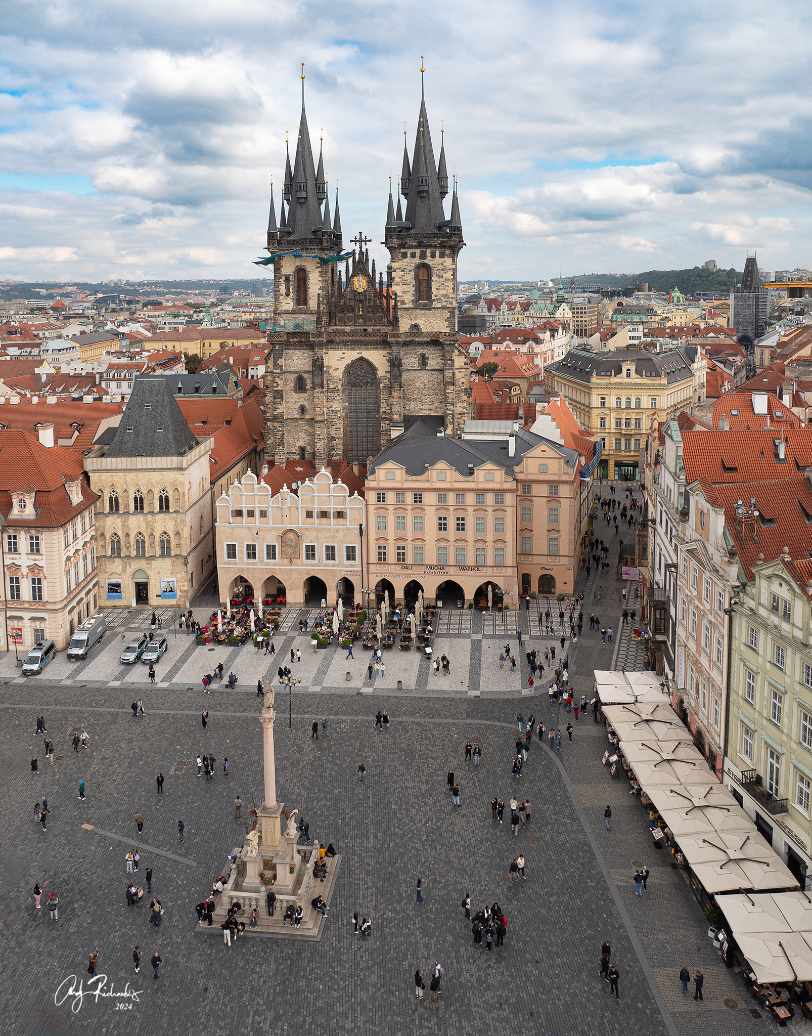 | Bird's-eye view of Staromestske' nameste' (town square) - Prague, Czech Republic Copyright Andy Richards 2024 - All Rights Reserved |